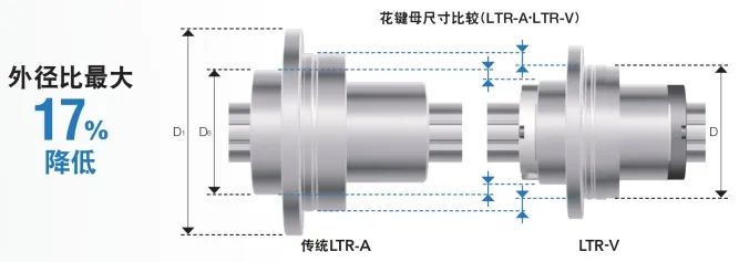 采用新循環路徑,使花鍵母外徑比傳統型號LT/LF型更小。