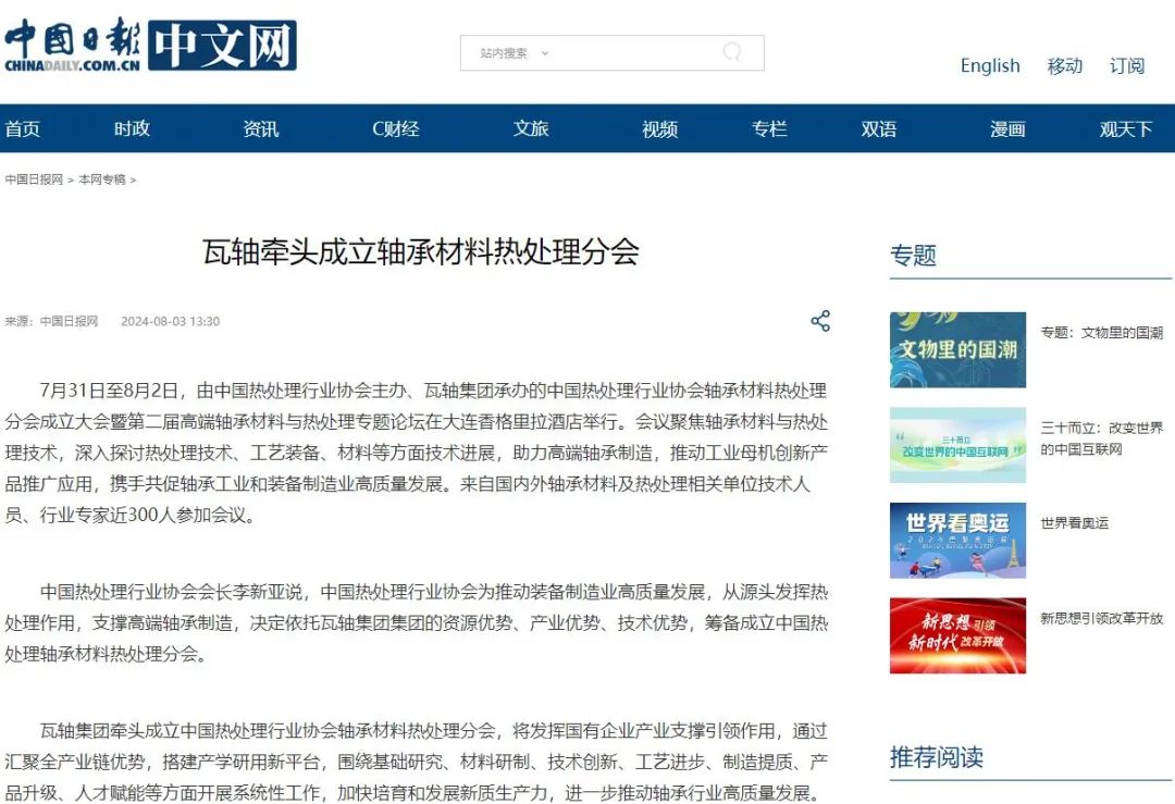 瓦軸集團牽頭成立中國熱處理行業協會軸承材料熱處理分會,將發揮國有企業產業支撐引領作用,通過匯聚全產業鏈優勢,搭建產學研用新平臺,圍繞基礎研究、材料研制、技術創新、工藝進步、制造提質、產品升級、人才賦能等方面開展系統性工作,加快培育和發展新質生產力,進一步推動軸承行業高質量發展。